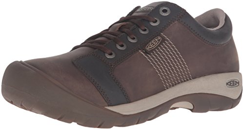 FEATURES of the Keen Men's Austin Shoe Combination waterproof nubuck and full-grain leather upper Removable metatomical molded EVA footbed Compression molded EVA midsole Non-marking rubber outsole